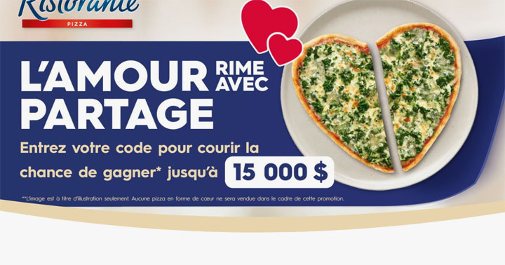 Inscrivez-vous au Promotion Dr. Oetker Ristorante – L’amour se partage et courez la chance de gagner 250 $ ou 15 000 $.