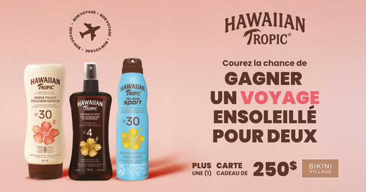 Ce concours de Bikini Village offre la chance de gagner un crédit de voyage de 7 000 $ pour deux personnes et une carte-cadeau Bikini Village de 250 $.