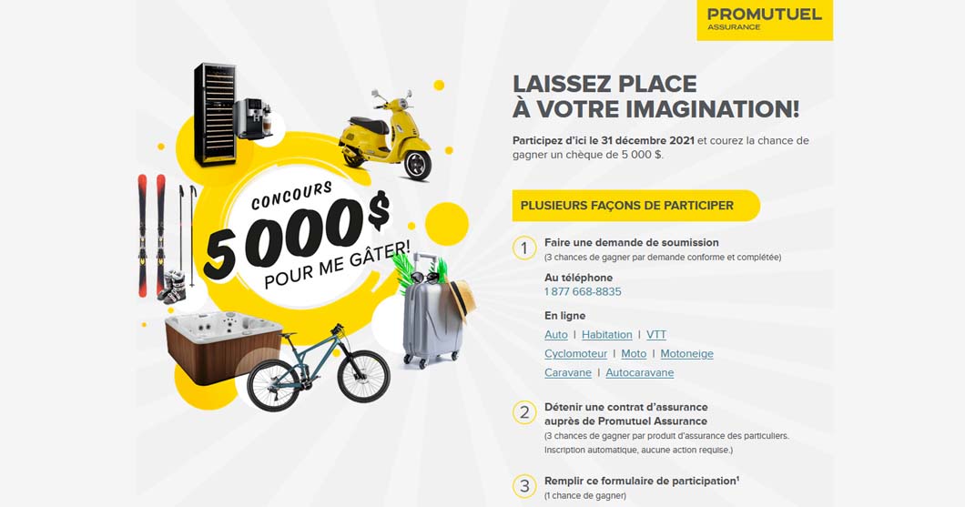 Participez au concours Promutuel assurance 5000$ pour me gâter et courez la chance de gagner un chèque de 5000$.