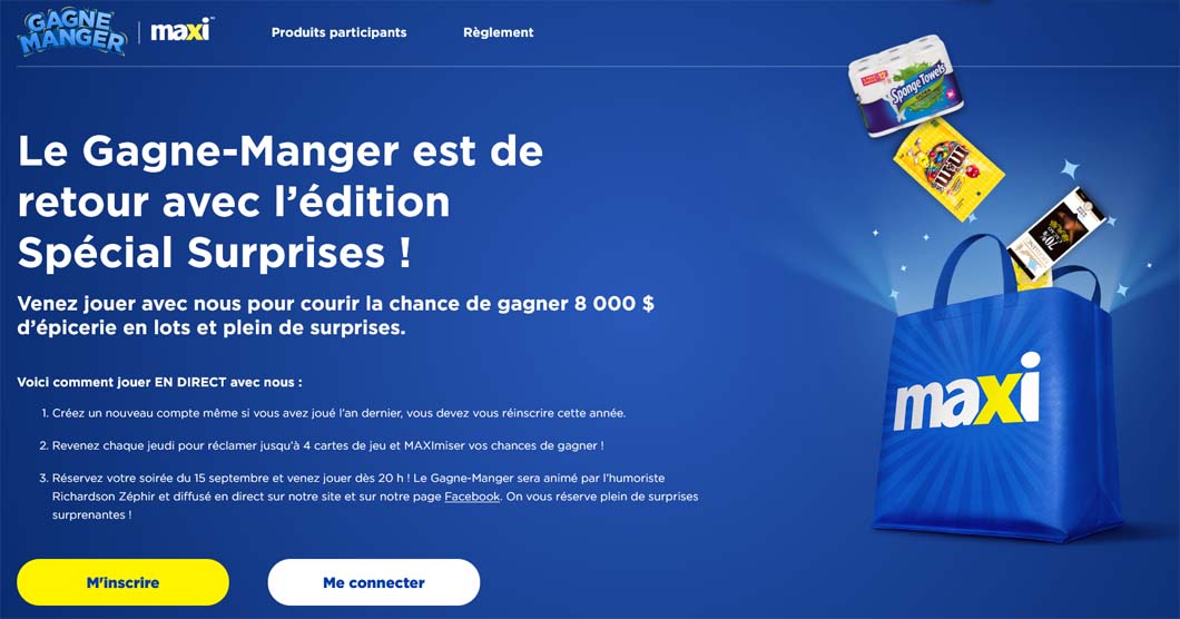 Jouez au jeu concours spécial de l’année Le gagne manger Maxi. Courez la chance de gagner 2000$ en carte-cadeau. Jusqu’à 8000$ à gagner.
