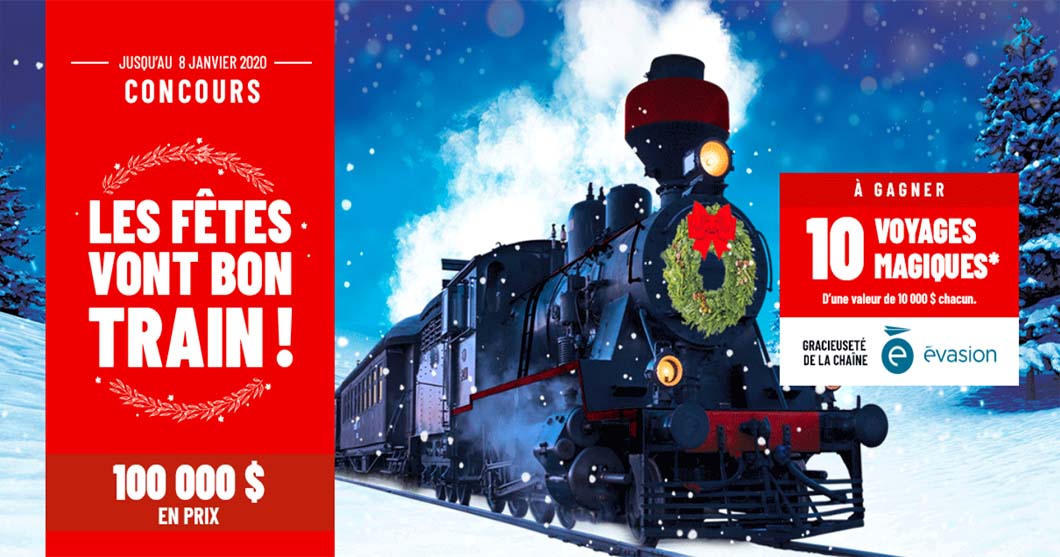 Participez au concours Metro Les fêtes vont bon train et courez la chance de gagner 1 des 10 voyages magiques (certificats) d’une valeur de 10 000 $ chacun.