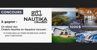 Inscrivez-vous au Concours Événements Attractions Québec – Chalets Nautika en Gaspésie. À gagner : 3 nuits en chalet pour 6 personnes.