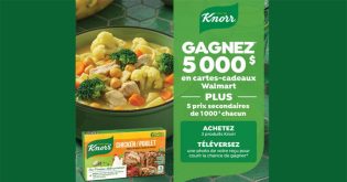 Inscrivez-vous au Concours Hiver chez Walmart de Knorr. À gagner : 1 grand prix de 5 000 $ et 5 prix de 1 000 $ en cartes-cadeaux Walmart.