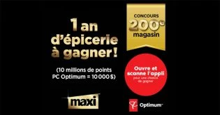 Inscrivez-vous au Concours Maxi – 200e magasin et courez la chance de gagner 10 000 000 de points PC Optimum d’une valeur de 10 000 $.