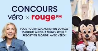 Inscrivez-vous au Concours Véro X Rouge FM – Voyage Walt Disney World. À gagner : un forfait vacances pour 4 en Floride.