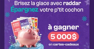 Inscrivez-vous au Concours Brisez la glace avec raddar – Épargnez votre p’tit cochon. À gagner : 5 000 $ en cartes-cadeaux.