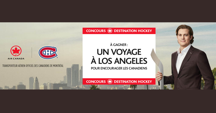 Participez au concours « Destination Hockey » pour courir la chance de gagner un voyage à Los Angeles, incluant billets d’avion, hébergement et billets pour un match des Canadiens.