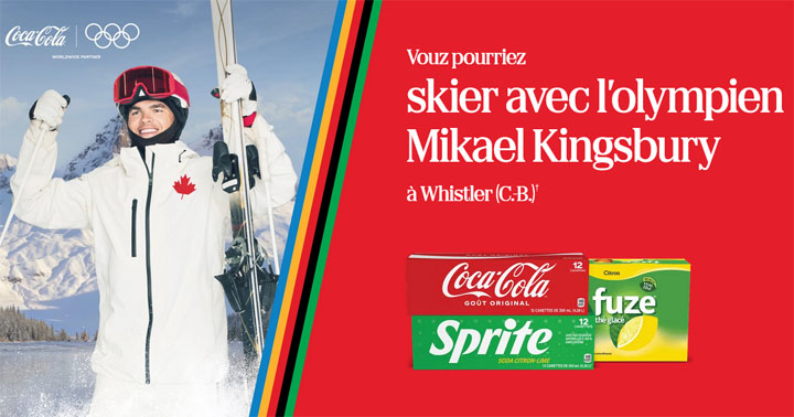 - Scannez le code QR du site skiwithcoke.ca/fr sur le présentoir en magasin ou envoyez une demande par la poste avec un texte original de 25 mots minimum à LPi Communications, 245, boul. Yorkland, bureau 305, Toronto (Ontario) M2J 4W9.