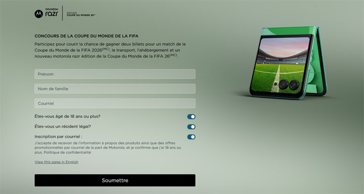 - S’inscrire via le lien de participation disponible dans la biographie du compte Instagram @motorolaus, dans certaines communications marketing, ou sur le site Web cloud.motorola-mail.com/events?p=fifa-cafr.